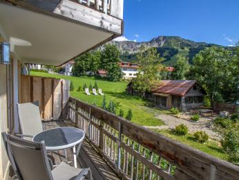 Genießen Sie Wohnungen im Alpen-Chic-Stil, Flachbild-TV, große Balkone mit Ost- bzw. Südblick auf die herrlichen Allgäuer Alpen.